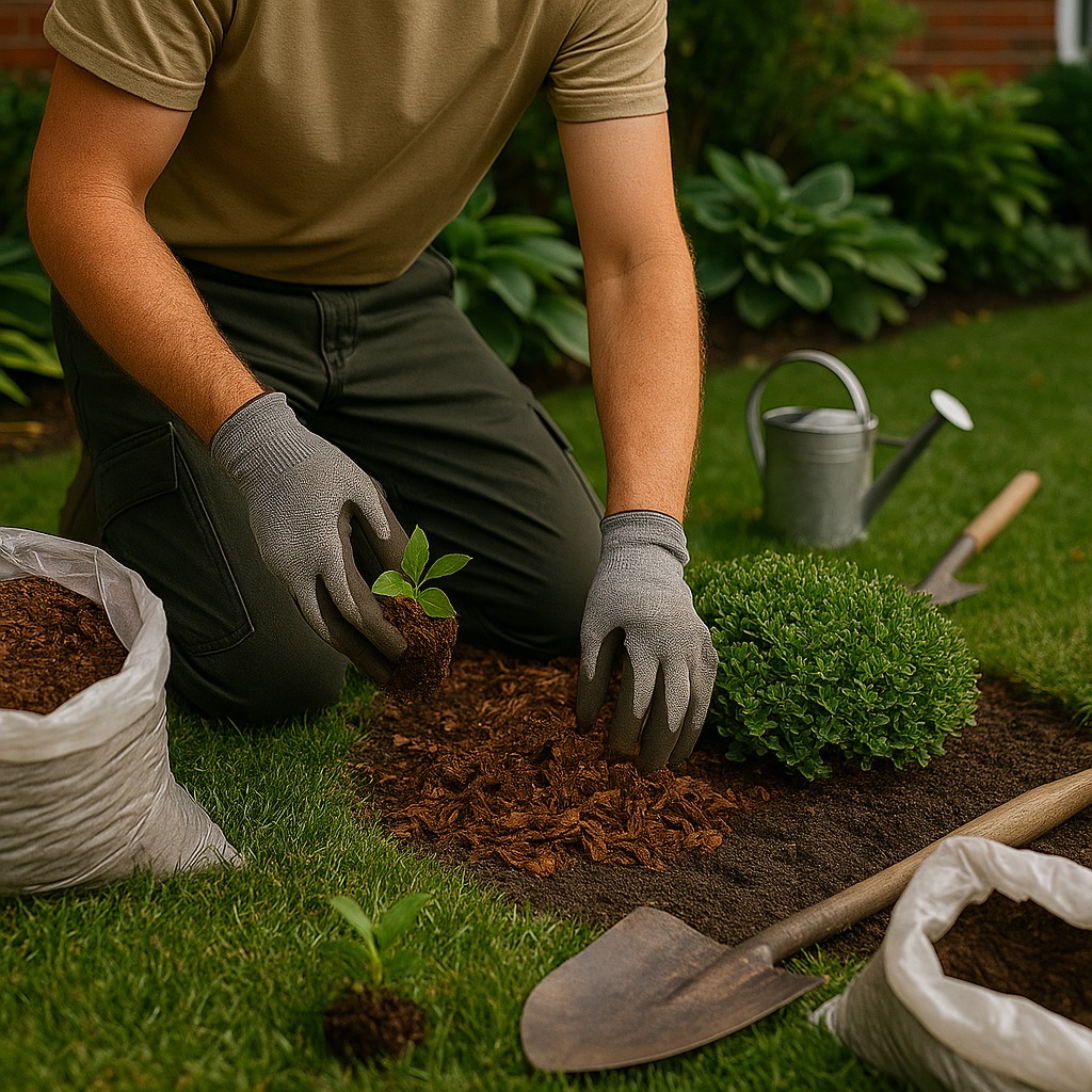 Jardins limpos, com remoção de resíduos, folhas e acabamento profissional