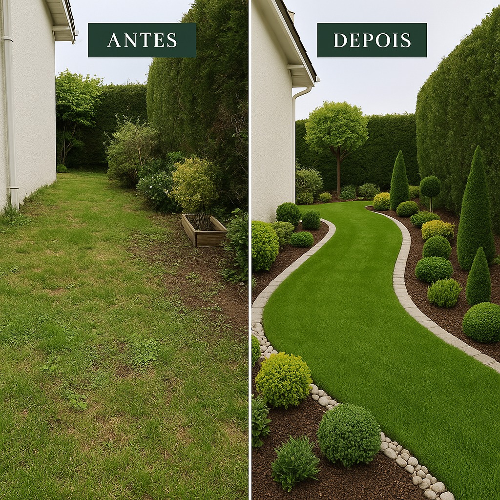 Jardins limpos, com remoção de resíduos, folhas e acabamento profissional